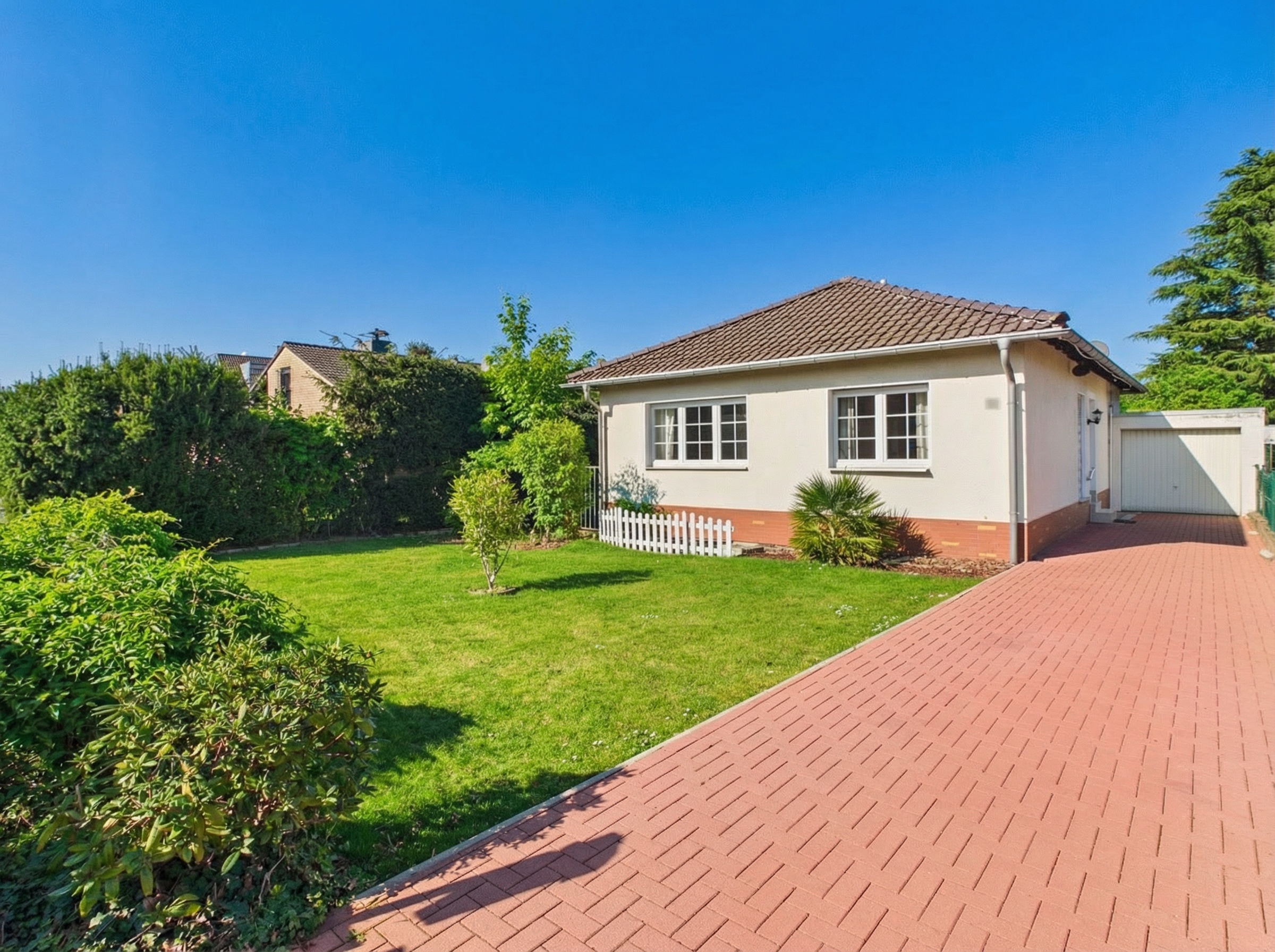 Die ursprüngliche Wohnfläche von ca. 90 m² im Erdgeschoss wurde in 2014 durch den neuen Wintergarten um ca. 14 m² Wohnfläche erweitert. Bei Bedarf nach zusätzlichem Wohnraum und um nachhaltig den Wert der Immobilie zu steigern, ließe sich über einen Dachgeschossausbau nachdenken, wie in der Nachbarschaft bereits vielfach umgesetzt. Abgerundet wird das Angebot durch die Einzelgarage am Haus und mehrere Stellflächen davor.