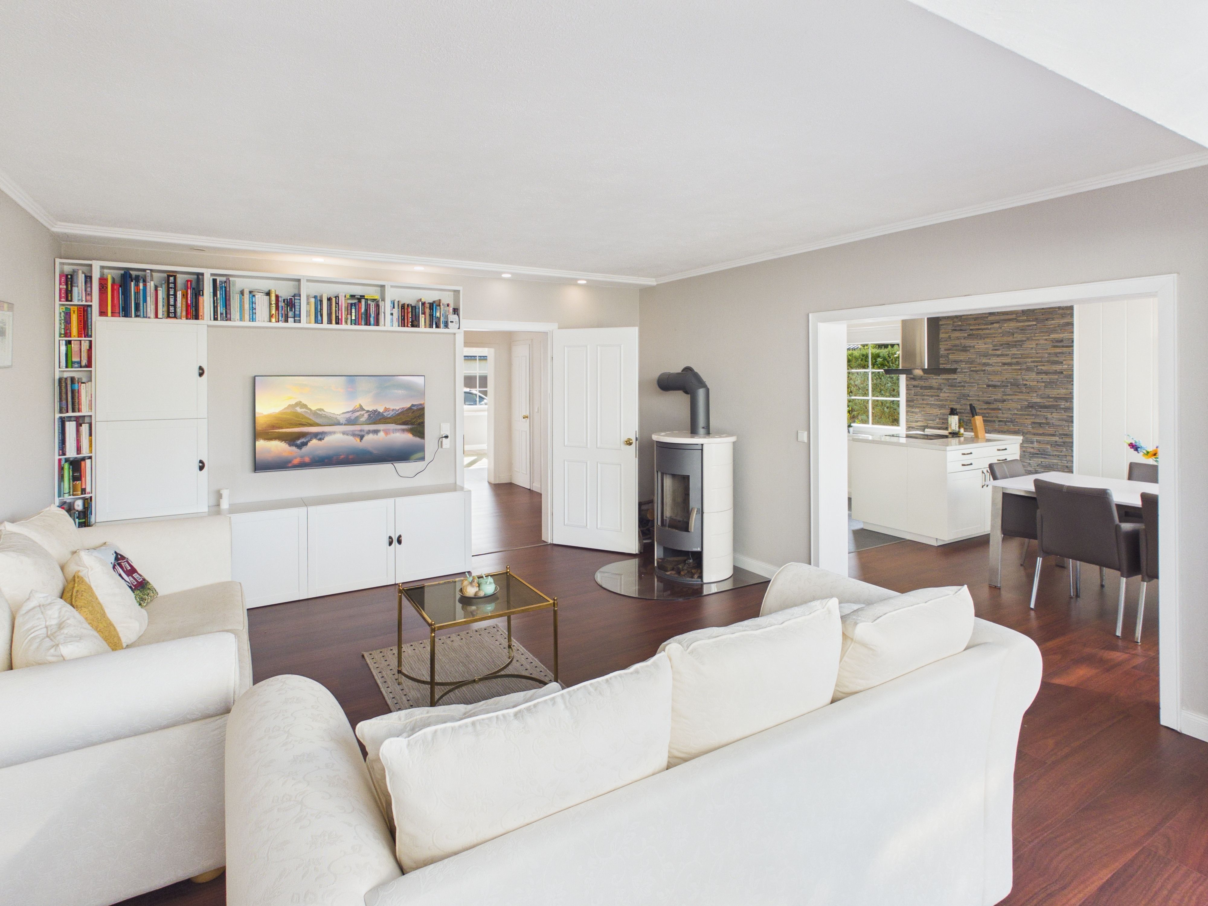 Den Wohnmittelpunkt im Erdgeschoss bildet der offen gestaltete Wohn-/Essbereich mit lichtdurchflutetem Wintergarten und moderner Küche, welche im Kaufpreis bereits enthalten ist.