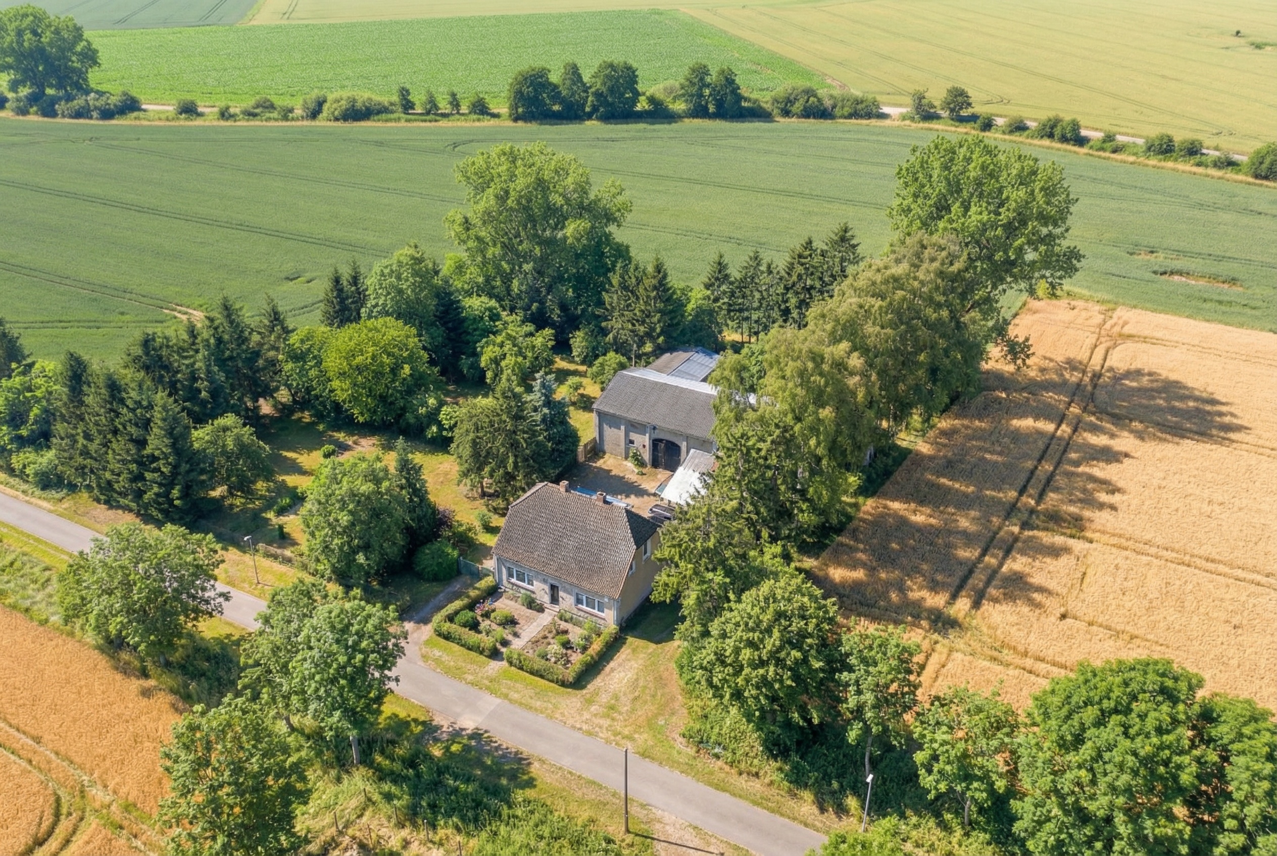 In die Felder zwischen Heiligenhagen und Satow eingebettet, präsentieren wir Ihnen das sanierungsbedürftige Anwesen im Grünen.